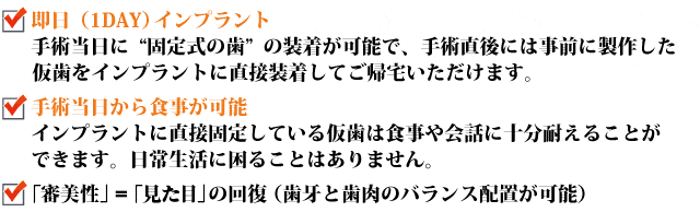 しかもたった1日で歯を入れることができ、噛めるようになる治療法です。
