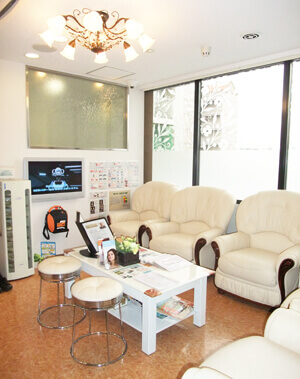 【待合室】おしゃれな待合室で、好きな雑誌を読みながらリラックスしてお待ちいただけます。